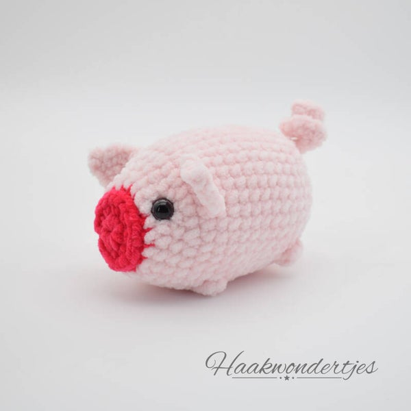 Knuffelvarkentje in Haakvelours – Schattig, Zacht en Handgemaakt