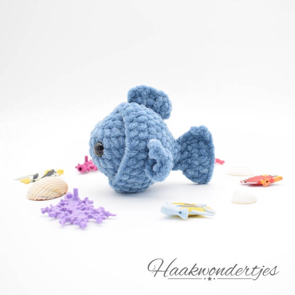 Duik in de wereld van ontspanning met deze schattige gehaakte vis! Deze vrolijke vis is niet alleen een leuke knuffel, maar ook een stressbal in vermomming. Ideaal om even je hoofd leeg te maken of als originele decoratie. Perfect als cadeautje voor jong en oud. Elk visje is met veel liefde handgemaakt met superzacht garen, waardoor hij heerlijk aaibaar is.